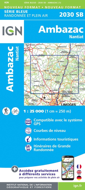 - Wandelkaart - Topografische kaart 2030 SB - Serie Bleue Ambazac | IGN - Institut Géographique National