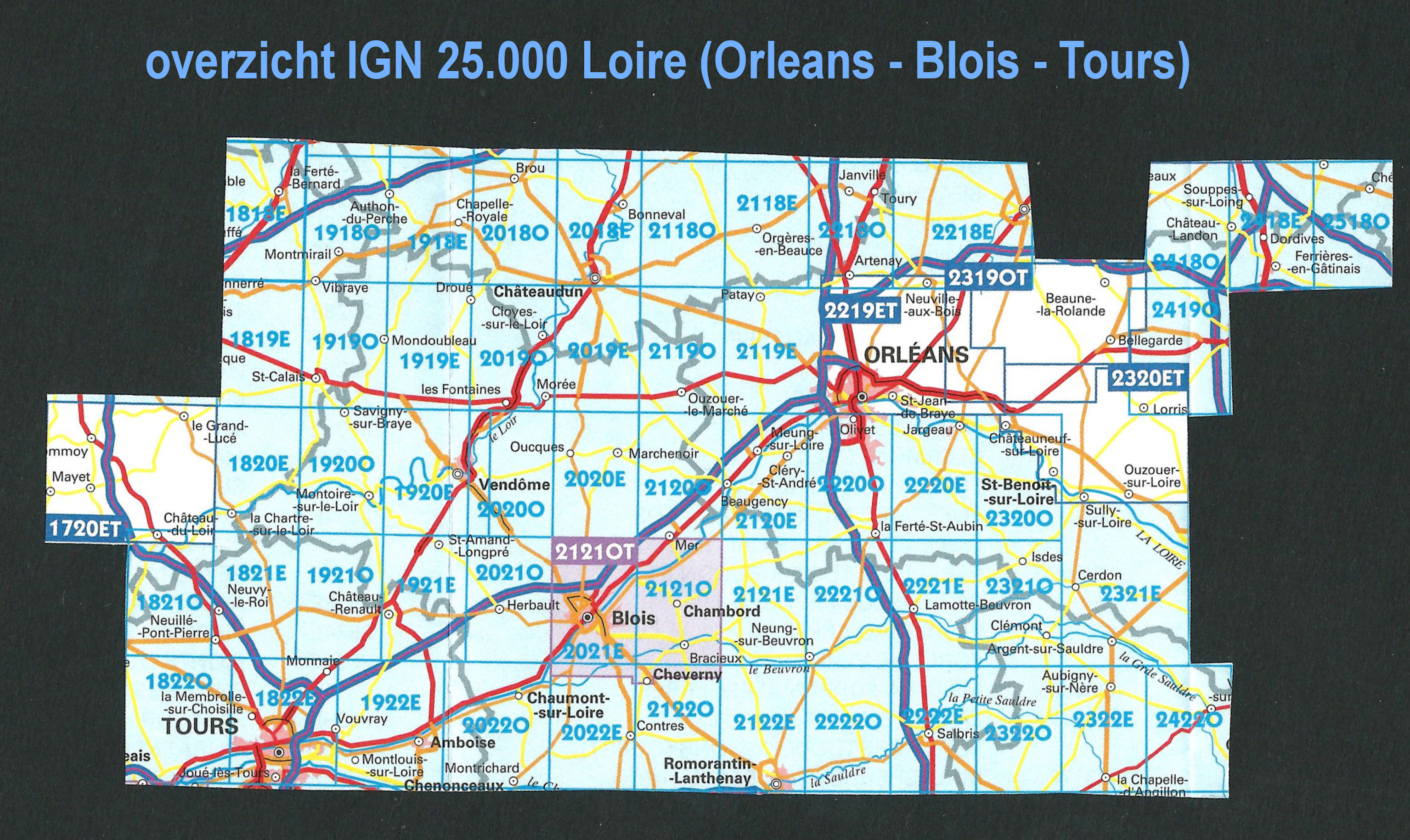 Topografische kaarten IGN 25.000 Loire - Centre: OOSTELIJKE GEDEELTE Orleans - Tours
