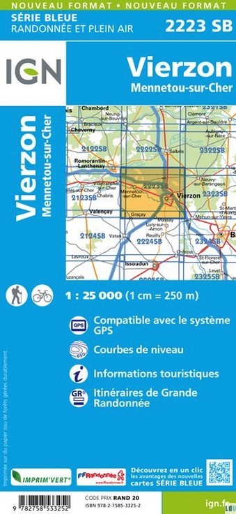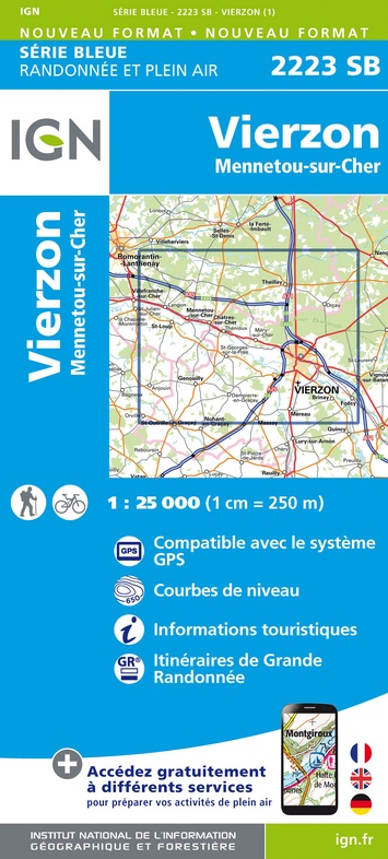 - Wegenkaart - landkaart 2223 SB - Serie Bleue Vierzon - Mennetou-sur-Cher | IGN - Institut Géographique National