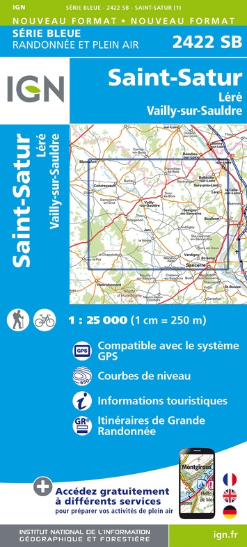 - Wandelkaart - Topografische kaart 2422 SB - Serie Bleue St-Satur, Léré, Vailly-sur-Sauldre | IGN - Institut Géographique National