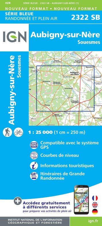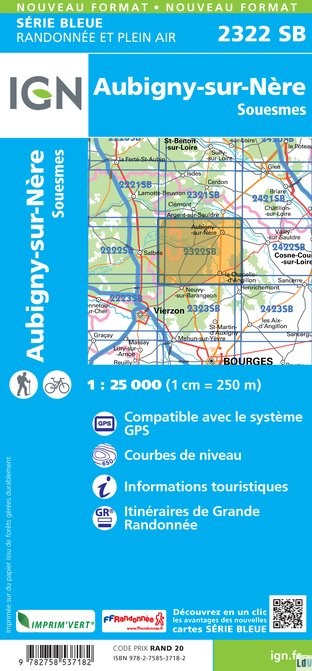 - Topografische kaart - Wandelkaart 2322 SB - Serie Bleue Aubigny-sur-Nère | IGN - Institut Géographique National