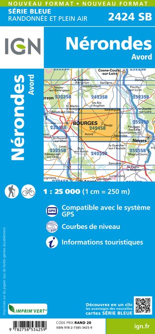 Wandelkaart - Topografische kaart 2424 SB - Serie Bleue Nérondes - Avord | IGN - Institut Géographique National (9782758553915)