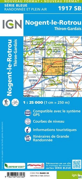Wandelkaart - Topografische kaart 1917 SB - Serie Bleue Nogent-le-Rotrou, Thiron-Gardais | IGN - Institut Géographique National (9782758533160)