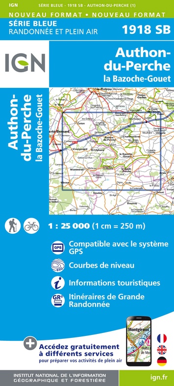 - Wandelkaart - Topografische kaart 1918 SB - Serie Bleue Authon-du-Perche, La Bazoche-Gouet | IGN - Institut Géographique National