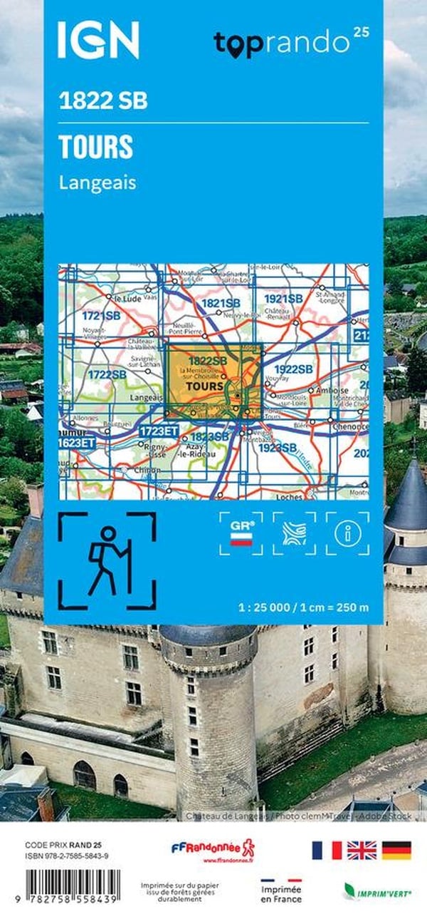 - Wandelkaart 1822 SB - Serie Bleue Tours / Langeais | IGN - Institut Géographique National
