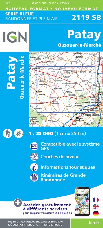 - Wandelkaart - Topografische kaart 2119 SB - Serie Bleue Patay, Ouzouer-le-Marché | IGN - Institut Géographique National
