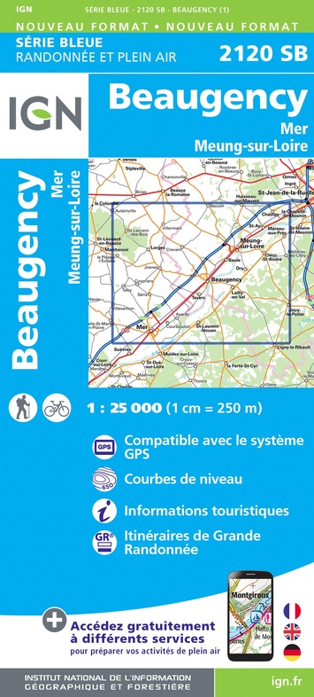 - Wandelkaart - Topografische kaart 2120 SB - Serie Bleue Beaugency, Mer, Meung-sur-Loire | IGN - Institut Géographique National