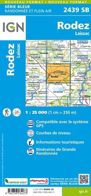 - Wandelkaart - Topografische kaart 2439 SB - Serie Bleue Rodez - Laissac | IGN - Institut Géographique National
