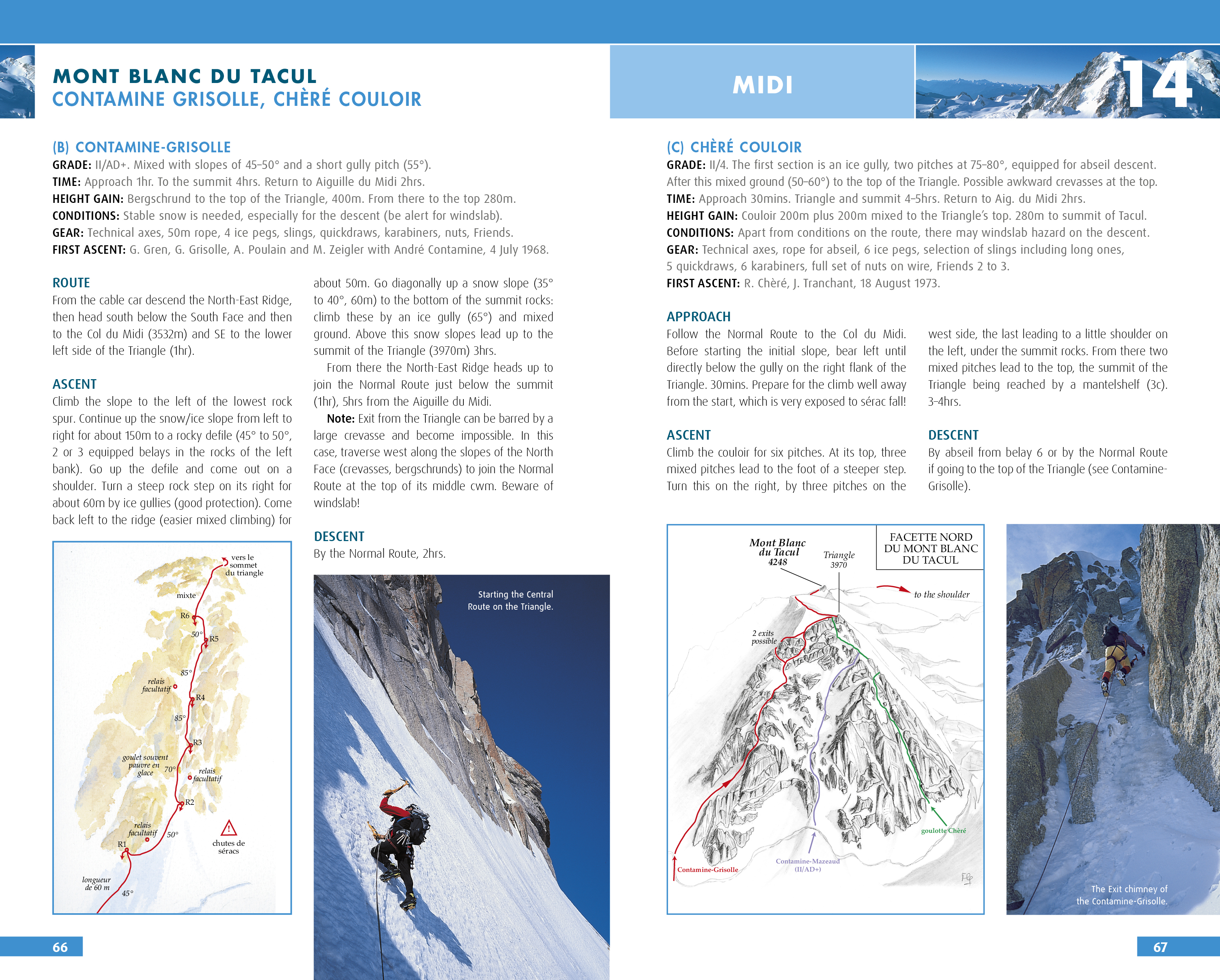 Each route features a detailed and comprehensive route description, a sketch map and a route summary detailing the start point, difficulty, timings, height gain, best time of year and the gear required. Beautifully illustrated with photos that show both the lie of the land and also the haunting beauty of the fabulous peaks of the Mont Blanc Range, this guide clearly indicates alpinism's continued popularity to climbers of all ages.