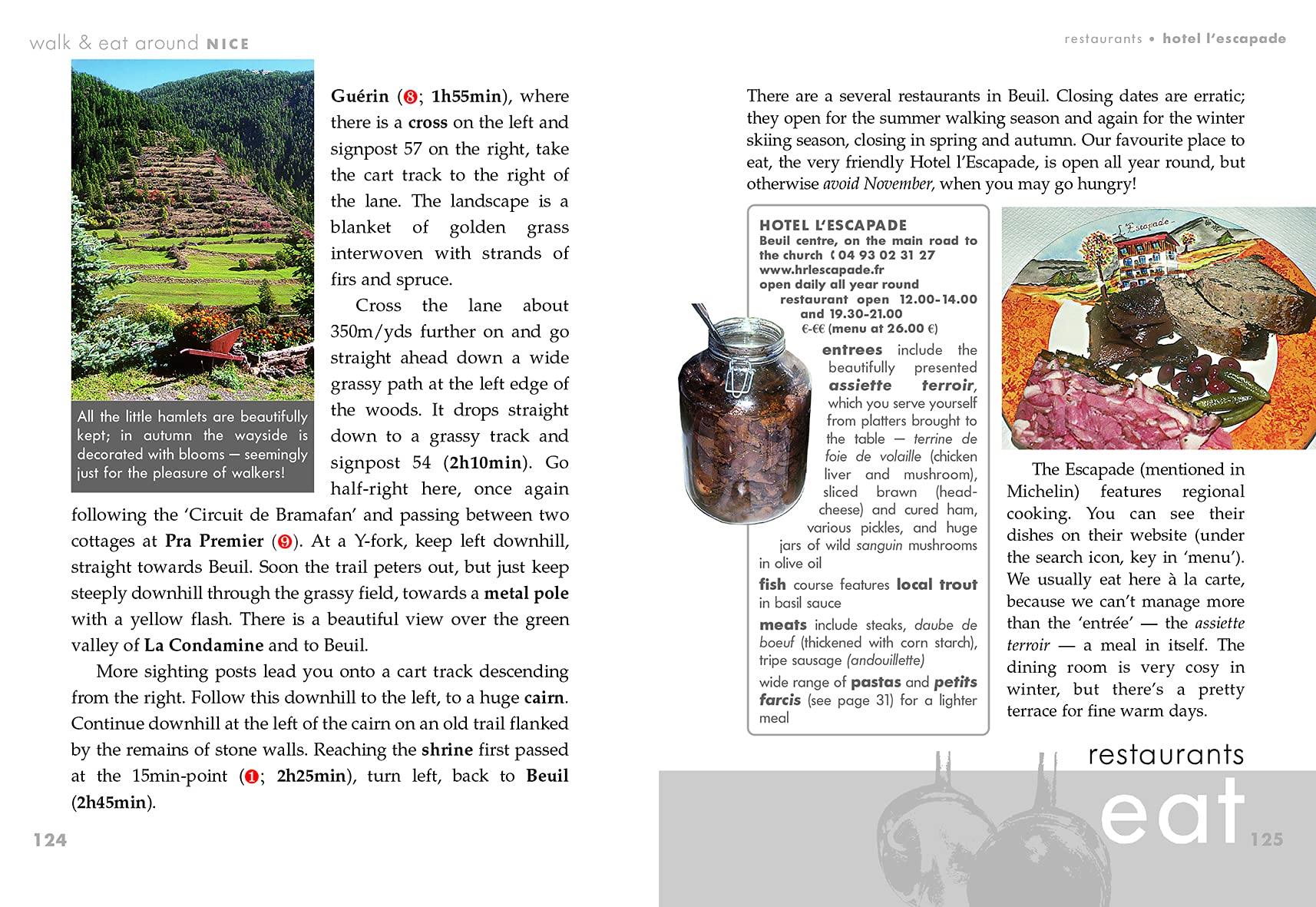 Een handig gidsje voor wandelaars die van goed eten houden. De restaurants aan de wandelroutes in Nice en het landelijk gebied eromheen worden omschreven. Met mooie wandelkaartjes (1:35.000) uitgevoerd. 12 wandelingen en 2 bergtochten worden omschreven, tijdstabellen van het goed ingerichte openbaar vervoer, hoogtepunten uit de menukaarten etc.
