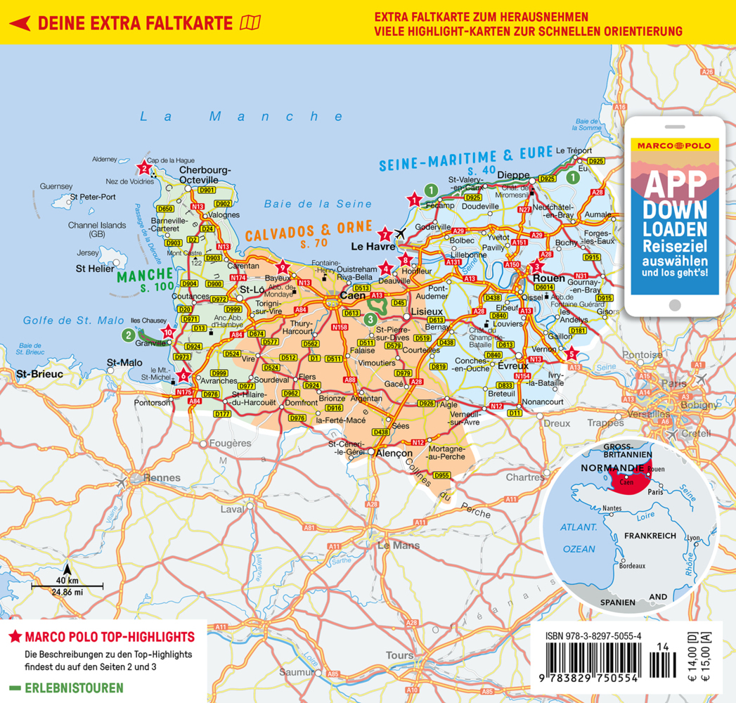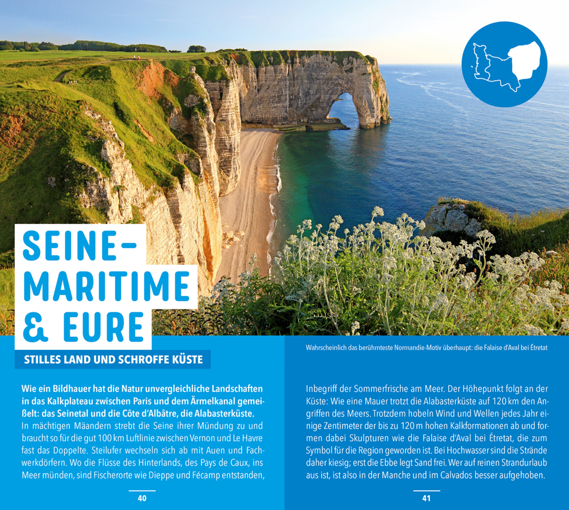 MARCO POLO Top Highlights Das Beste zuerst So tickt die Normandie Essen, Shoppen, Sport Regionen im Überblick Seine-Martitime + Eure Calvados + Orne Manche Erlebnistouren