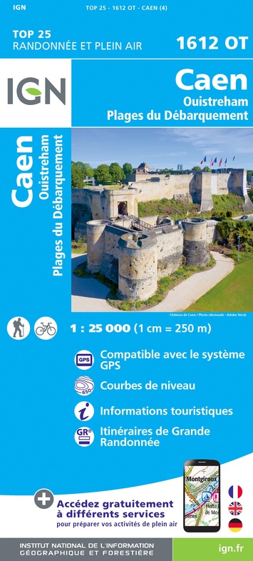 - Wandelkaart - Topografische kaart 1612OT Caen - Ouistreham , Normandië | IGN - Institut Géographique National