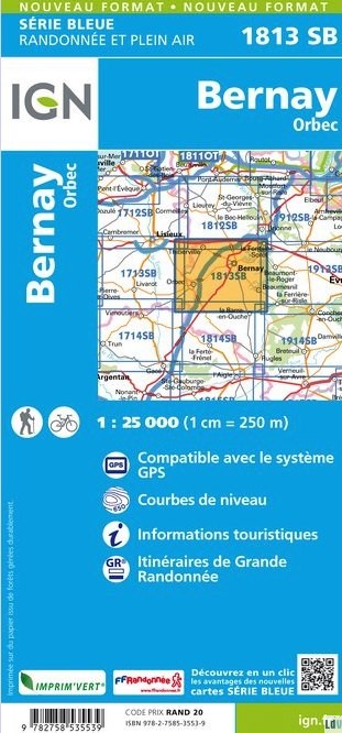 - Wandelkaart - Topografische kaart 1813 SB - Serie Bleue Bernay - Orbec | IGN - Institut Géographique National