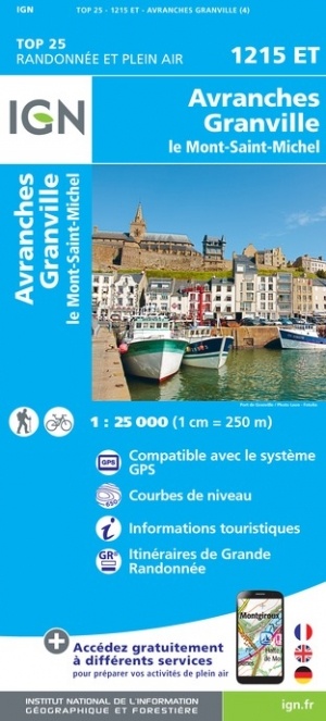 - Wandelkaart - Topografische kaart 1215ET Avranches, Granville, Le Mont Saint Michel | IGN - Institut Géographique National