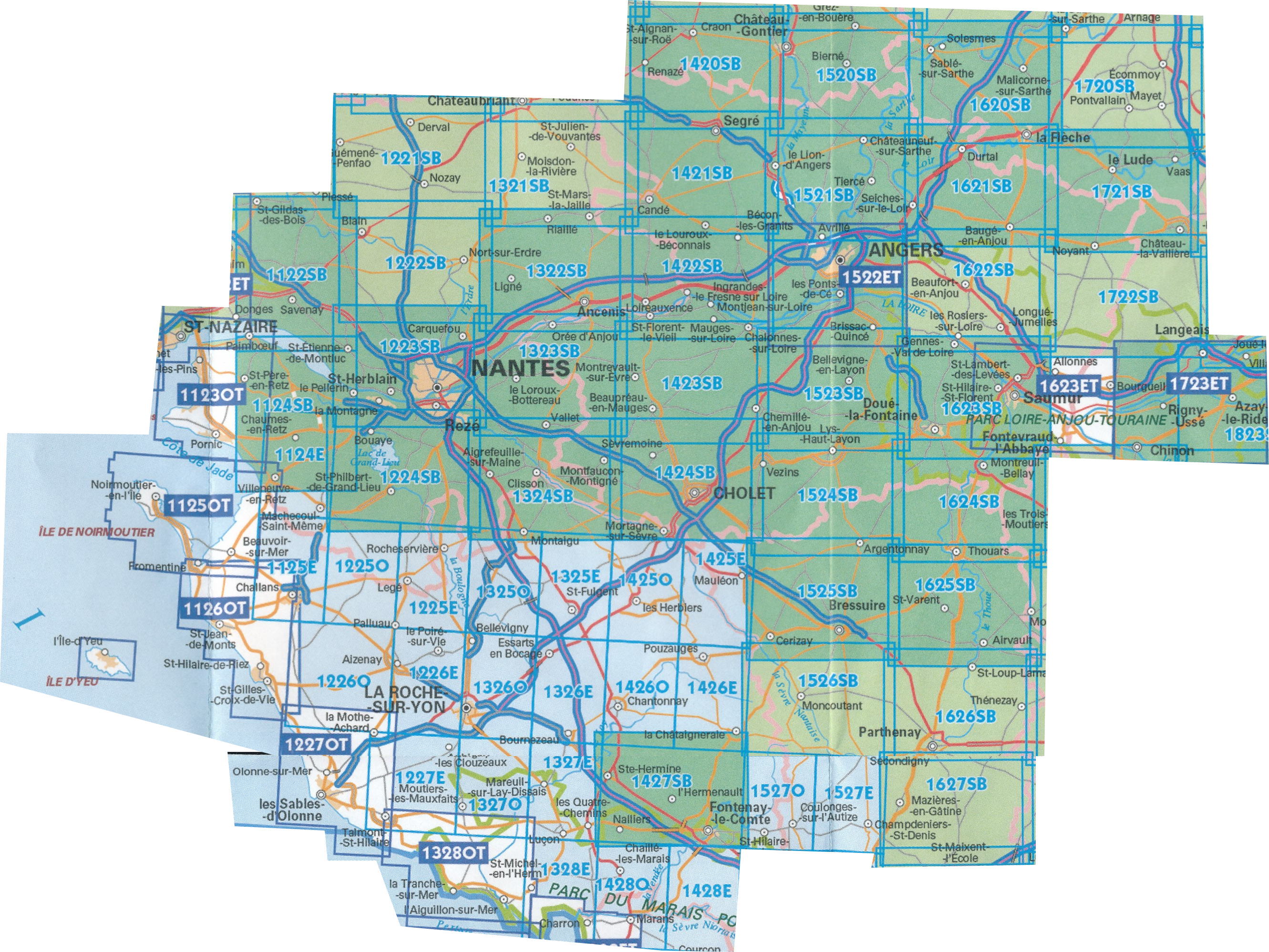 Topografische kaarten IGN 25.000 Loire - Centre: KUST - WESTELIJK GEDEELTE Angers - Nantes