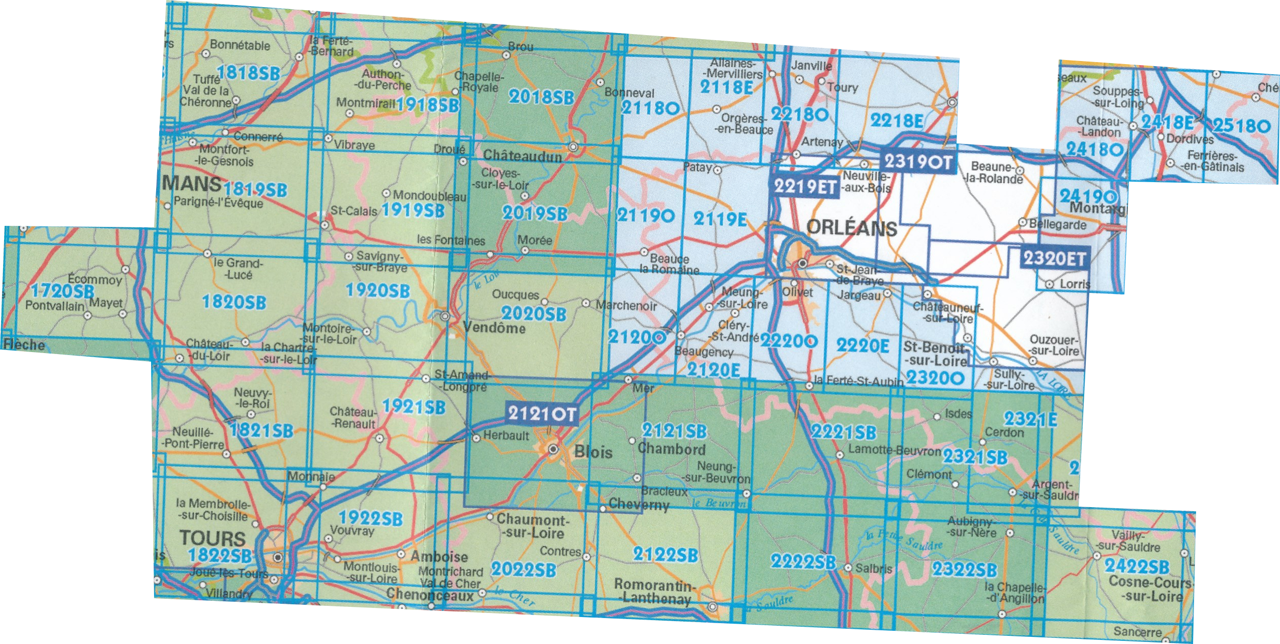 Topografische kaarten IGN 25.000 Loire - Centre: OOSTELIJKE GEDEELTE Orleans - Tours