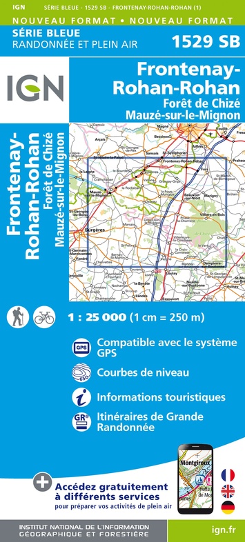- Wandelkaart - Topografische kaart 1529 SB - Serie Bleue Mauzé-sur-le-Mignon, Frontenay-Rohan, Foret de Chize | IGN - Institut Géographique National