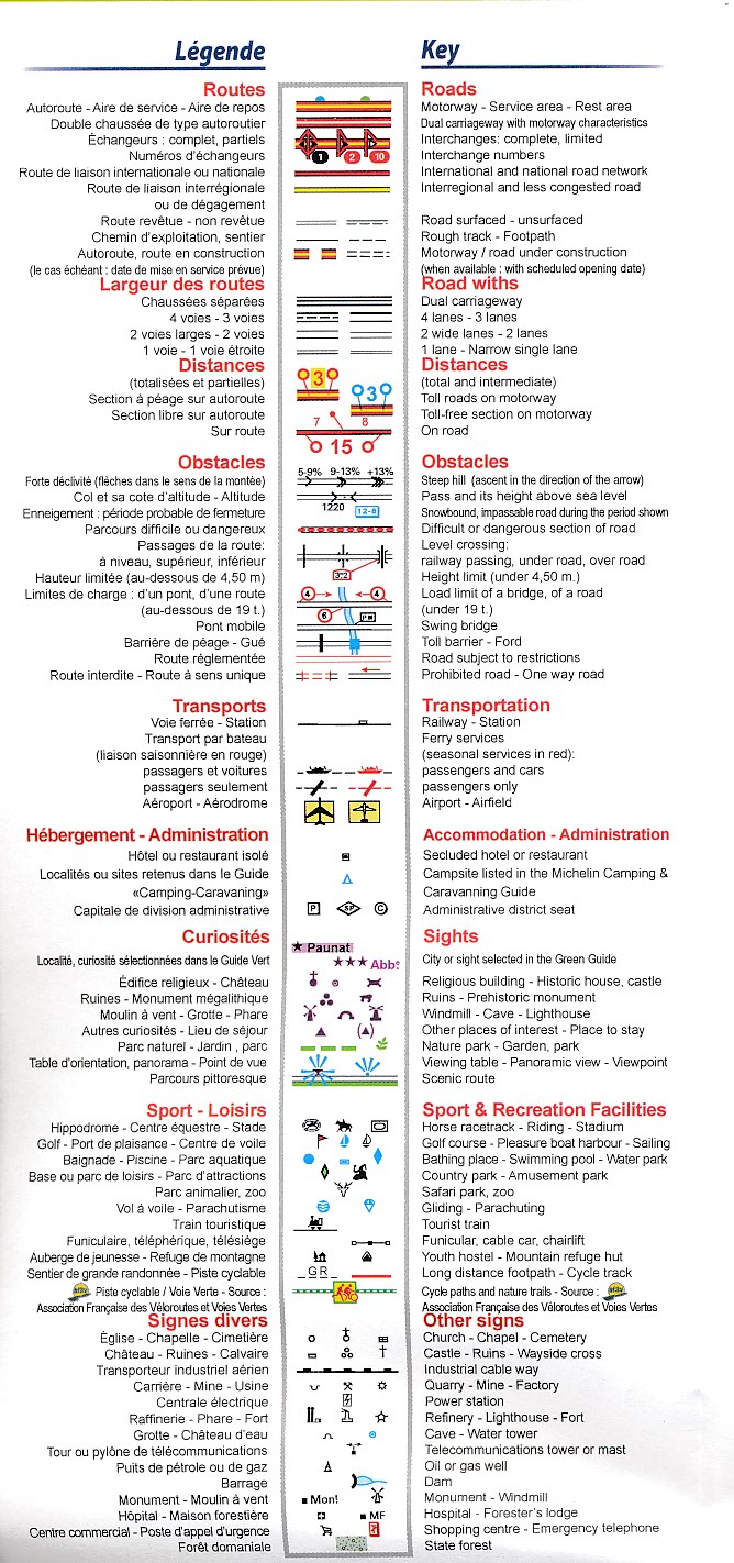 Speciale toeristische kaart, gemaakt voor een goed bezocht gebied en uitvergroot. Daardoor zeer prettig leesbaar met een hoog nivo wat we van Michelin al veel langer gewend zijn. Alle wegen staan er op, met verschillende kleuren voor de aparte soorten wegen. Verder veel aandacht met symbolen voor de bezienswaardigheden in de regio, de bekende groene stroken naast de mooie wegen en ingetekende doorgaande wandelroutes als grande randonnees.