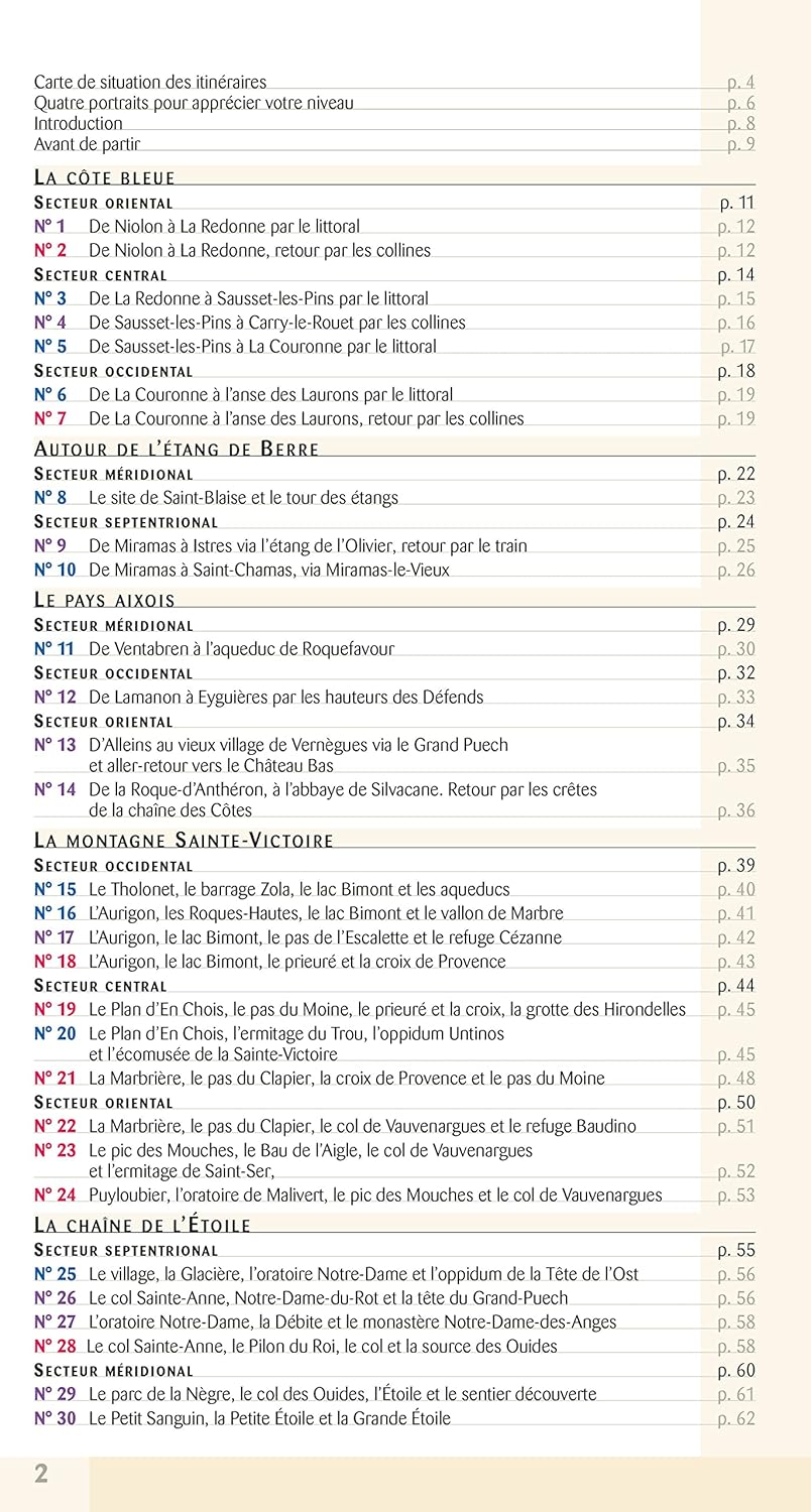 Les massifs provençaux autour de Marseille et Aix-en-Provence possèdent contre toute attente une remarquable diversité géologique, bio-géographique et paysagère qu’il est très agréable de parcourir grâce à une multitude de sentiers très bien balisés, certes souvent très caillouteux ou pierreux.Dans ces milieux méditerranéens, exigeants, avec la chaleur, le vent, les rares points d’eaux, les reliefs tourmentés, la végétation rare ou agressive, marcher nécessite de l’attention et un minimum de préparation. Mais tout est largement compensé par cette merveilleuse lumière, ces couleurs, ces senteurs et ces splendeurs propices à la contemplation.On abordera tout d’abord la Côte Bleue, adossée à la petite chaîne de l’Estaque, avec ses charmants ports, et ses sentiers littoraux ponctués de vestiges historiques, de plantes rares et de réserves marines. Puis vous serez quelque peu décontenancés par ces étangs saumâtres ou salés autour de l’oppidum celto-ligure de Saint-Blaise ou des cités d’Istres et de Miramas en bordure du vaste étang de Berre.