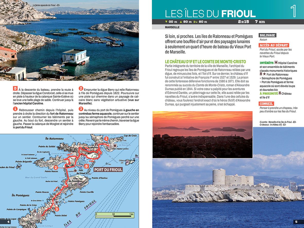 Le territoire concerné s’étend du château d’If à Saint-Cyr-sur-Mer en passant par Cassis etLa Ciotat : l’essentiel du Parc national des Calanques. Au bord de l’eau ou sur les sentiers qui dominent la Méditerranée, les marcheurs auront la chance de profiter au plus près de ce territoire grandiose à préserver.