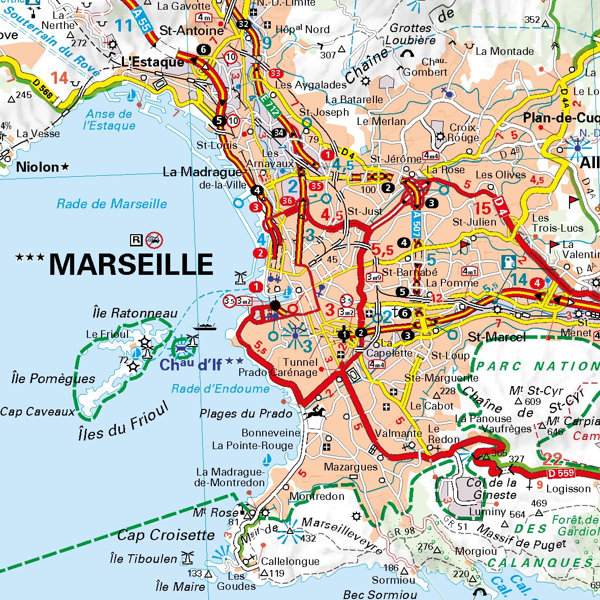 Extra: stadsplan van Marseille voor eenvoudige oriëntatie