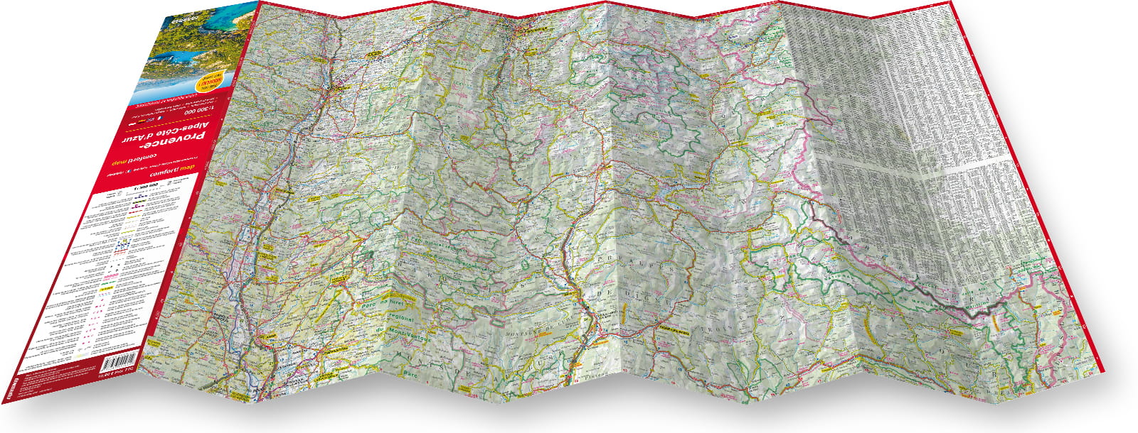 Provence Alpes Côte d'Azur ExpressMap 1/300 000ExpressMap is de uitgever van comfort! maps, geplastificeerde kaarten die eenvoudig te vouwen zijn, zelfs met één hand. Een uniek en innovatief product. Comfortabel, waterbestand, onverscheurbaar, comfort! maps blijven hun kwaliteit lang behouden. Duurzame kaarten, nuttig om een uitstap te plannen en handig voor onderweg.