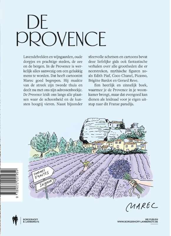 Lavendelvelden en wijngaarden, oude dorpjes en prachtige steden, de zee en de bergen. In de Provence is werkelijk alles aanwezig om een gelukkig mens te worden. Dat heeft cartoonist Marec goed begrepen. Hij maakte van de streek zijn tweede thuis en deelt nu met ons zijn adressenboekje. De Provence leidt ons langs alle plaatsen waar de schoonheid en de kunsten hoogtij vieren. Naast zijn bijzonder sfeervolle schetsen en cartoons bevat deze liefelijke gids ook foto’s en fantastische verhalen over alle grootheden die hier neerstreken, mythische figuren zoals Edith Piaf, Coco Chanel en Le Corbusier. Een heerlijk en zinnelijk boek, waarmee je de Provence in je woonkamer brengt, maar dat evengoed kan dienen als leidraad voor je eigen reis naar dit wonderlijke Franse paradijs.Reviews