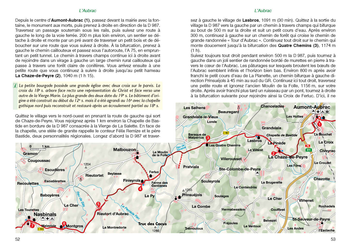 Bettina Forst emprunte régulièrement cette section des chemins de pèlerinage en Europe et accompagne également des groupes de randonneurs. Elle décrit la Via Podiensis, avec le balisage du GR 65, en 33 étapes au total jusqu’à la jonction avec le chemin de pèlerinage espagnol qui prend la relève à St-Jean-Pied-de-Port/Roncevaux voire au Col du Somport. L’itinéraire, autant apprécié des pèlerins que des randonneurs, s’étire dans le sud charmant du Massif central par les contrées isolées de la Margeride et du massif de l’Aubrac, à travers la séduisante Vallée du Lot, les plateaux calcaires des Causses et le paysage vallonné de la Gascogne aux Pyrénées. Les régions montagneuses et hautes plaines peu peuplées et où l’agriculture est quasiment absente, offrent une flore variée entre de vastes étendues boisées, des cours d’eau et des lacs naturels. Au cœur de cette région si riche en surprises, des églises, des couvents, des châteaux, des forts et de petites villes médiévales bordent le chemin.