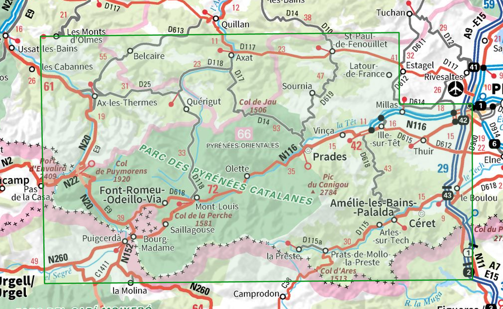 Pyrenees Catalanes, Font Romeu, Massif Canigou Map