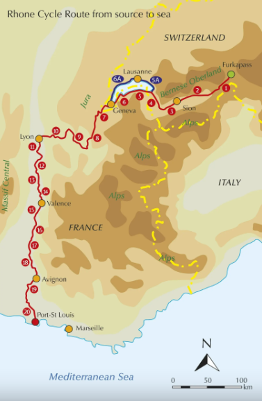 an 895km ride through France and Switzerland from the Swiss Alps to the Mediterranean Sea