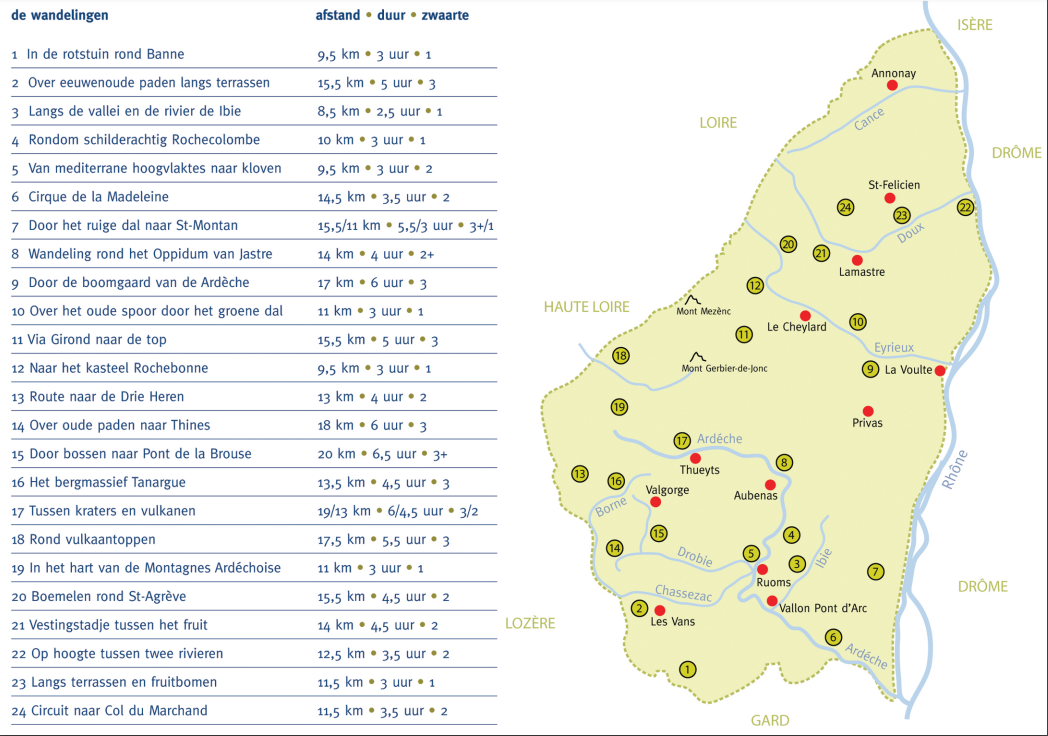 Wij hebben alleen een aantal wandelingen in het zuiden van de Ardeche gedaan maar die waren allemaal prachtig. De route beschrijving is prima en ook de verschillende GPS punten zijn handig. Aanrader!