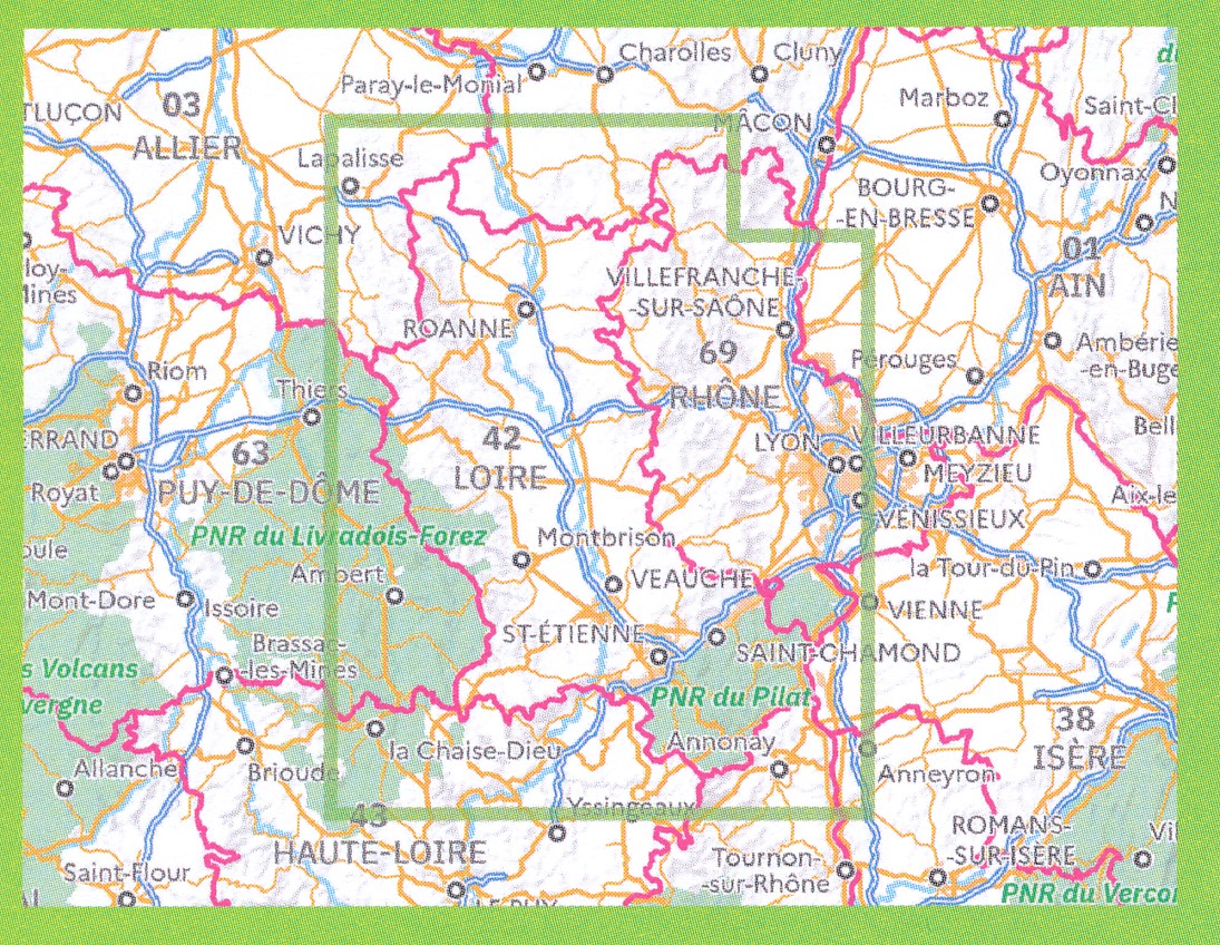 - Wegenkaart - landkaart - Fietskaart D69 Top D100 Rhone | IGN - Institut Géographique National