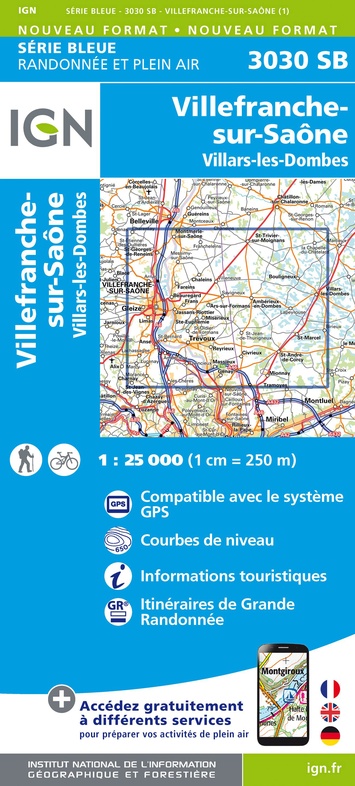 - Wandelkaart - Topografische kaart 3030 Villars-les-Dombes – Villefranche-sur-Saône | IGN - Institut Géographique National
