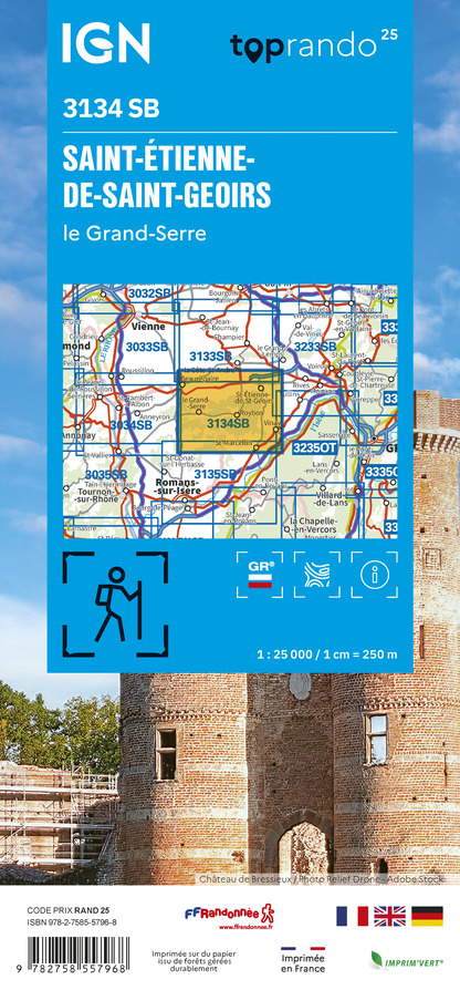 - Wandelkaart - Topografische kaart 3134 SB - Serie Bleue St-Etienne-de-St-Geoirs – Le Grand-Serre | IGN - Institut Géographique National