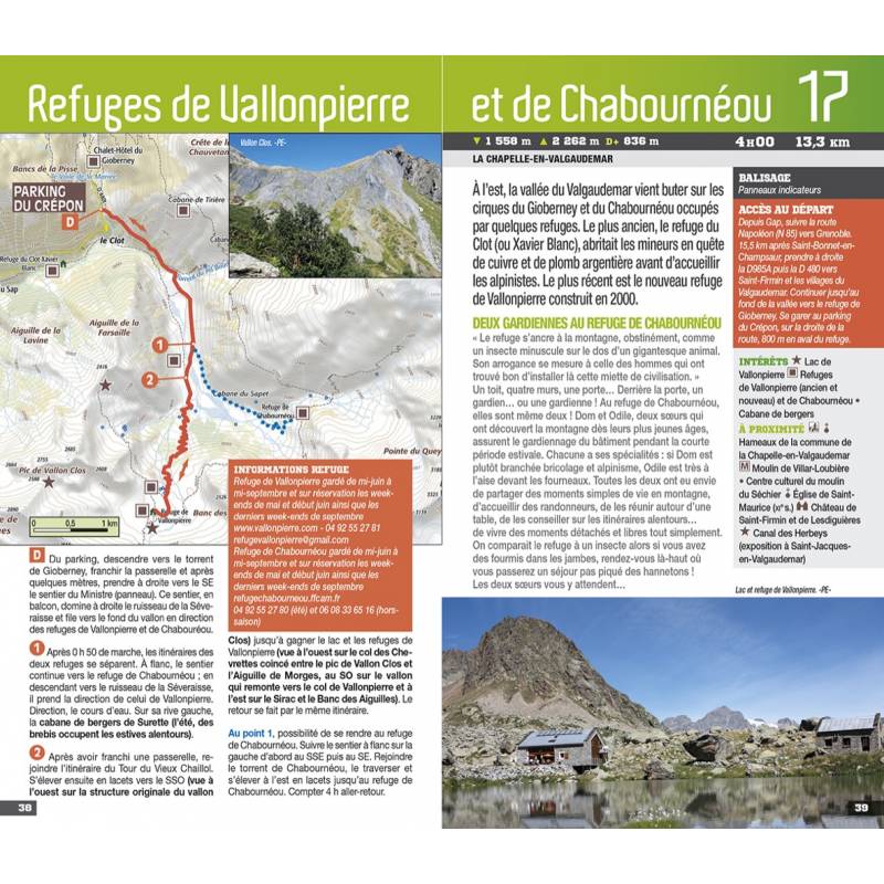 La collection "Les Incontournables" change de charte ! Le guide :Des balades dans 20 refuges différents du massif des Écrins, dont les sommets mythiques (le Dôme des Ecrins, la Meije…) et les vallées sauvages se répartissent de part et d’autre des départements de l’Isère et des Hautes-Alpes.Le guide contient une double-page centrale avec une présentation des refuges emblématiques des Écrins : refuge de l’Aigle, refuge du Soreiller, refuge de Pelvoux, refuge de l’Olan. Auteur(e)(s): Patrick Espel est basque. Chercheur au Laboratoire national de Métrologie et d’Essais en région parisienne, il parcourt les montagnes de France et du monde depuis sa plus tendre enfance. Il est déjà auteur chez Chamina Edition de nombreux topoguides dont « 20 refuges de montagne en famille » tome 1 & 2, « Les 40 plus beaux lacs des Écrins », « Les 80 plus beaux lacs du Parc national des Pyrénées ».• Chamina fait peau neuve : nouvelles couverture et présentation