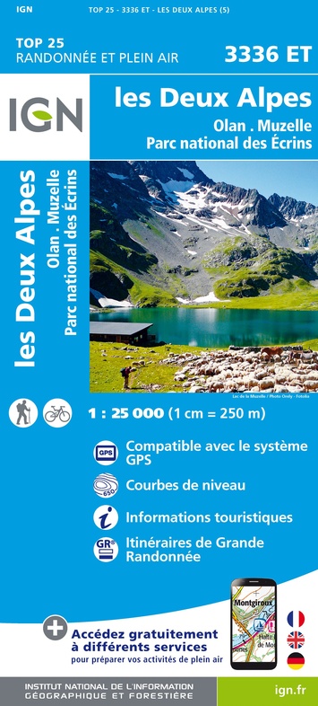 - Wandelkaart - Topografische kaart 3336ETR Les Deux Alpes / Olan / Muzelle /PNR des Ecrins | IGN - Institut Géographique National
