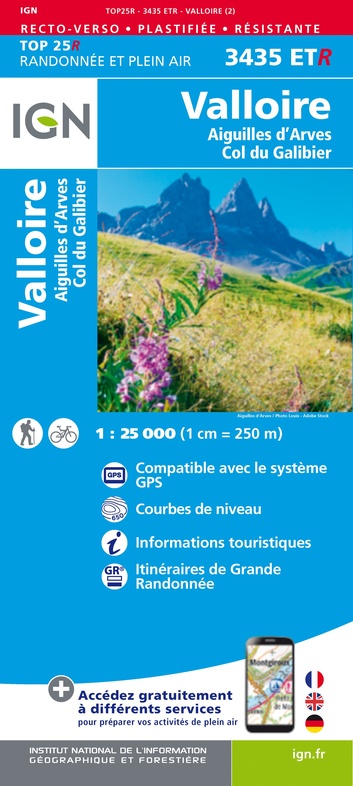 L'indispensable carte de randonnée IGN 3435ETR Résistante. D'une très grande précision elle contient tous les détails existants sur le terrain : voies de communication jusqu'au moindre sentier, constructions jusqu'au hangar, bois, arbre isolé, rivière, source... Sans oublier la représentation du relief par des courbes de niveau. Les sentiers balisés et les informations touristiques sont également représentées.