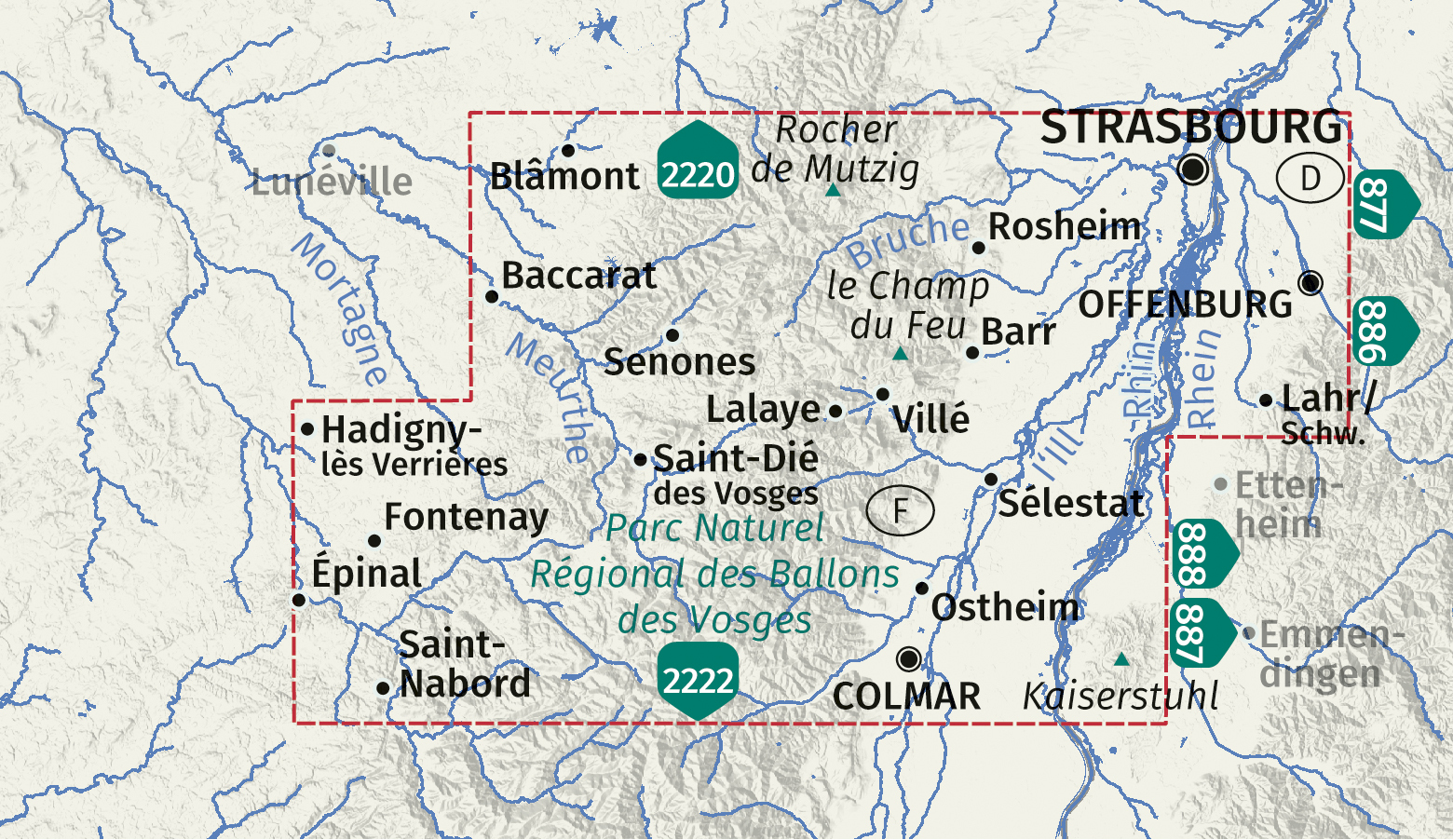 2 kaarten voor een groot dekkingsgebied van de centrale Vogesen en het Elsass