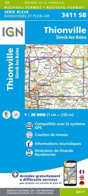 - Wandelkaart - Topografische kaart 3411 SB - Serie Bleue Thionville | IGN - Institut Géographique National