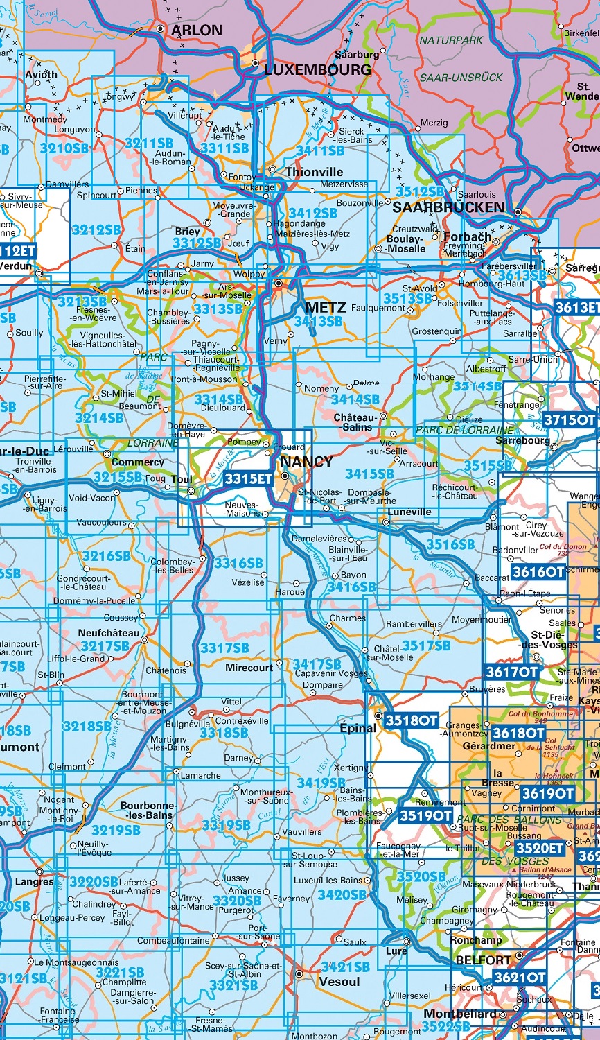 Overzicht IGN 25.000 Vogezen en Elzas - Lotharingen: Oost