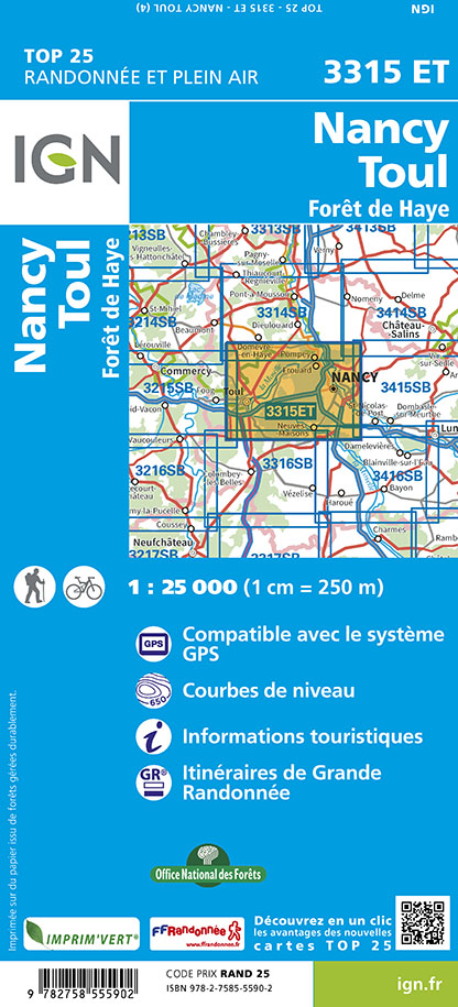 - Topografische kaart - Wandelkaart 3315ET Nancy / Toul / Forêt de Haye | IGN - Institut Géographique National