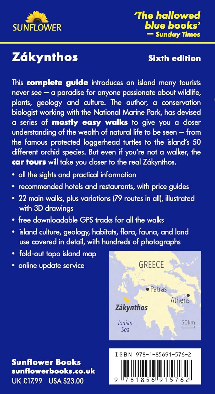 This guidebook is an ideal companion for motorists who want to tour Zakynthos by car, as well as those planning a holiday walking in Zakynthos. The book combines the best features of our ‘Landscapes’ walking and car touring guides with all the detail you would expect in a hefty general guide, but it is pocket size and in full colour. Coverage includes getting there and getting about; recommended accommodation and restaurants; practicalities A-Z; history; 22 main walks with many variations, all with both hand-drawn and GPS-compatible maps; copious notes on geology, flora and fauna (all illustrated).