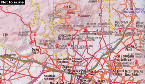 De atlas, als uitbreiding van de populaire weg Anavasi's kaarten van de Peloponnesos, toont negen verschillende soorten wegen van tolwegen van snelwegen tot lokale wegen in slechte staat en geeft locaties van benzinestations. De kaarten tonen ook het spoorwegnet. Symbolen hoogtepunt verschillende plaatsen van belang, met inbegrip archeologische vindplaatsen, Byzantijnse monumenten, kloosters, ski resorts, enz.