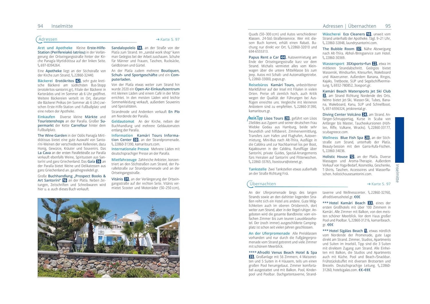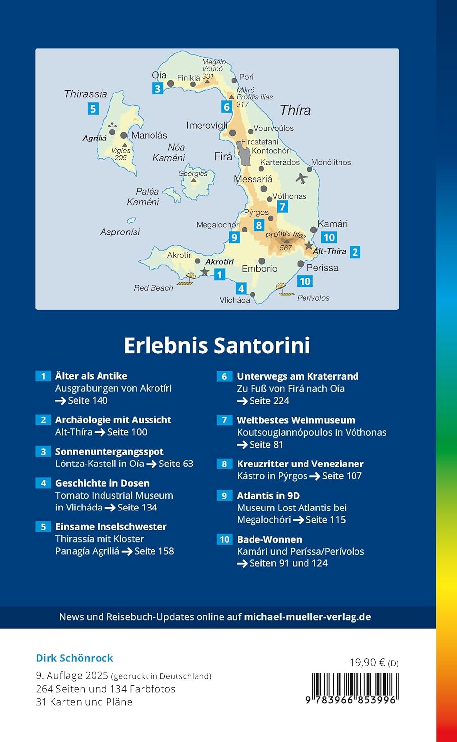 Der Mercedes unter den Reisehandbüchern eignet sich ideal als Urlaubsvorbereitung und Lektüre vor Ort.« Das schreibt Markus Welter von TMS - Tourism Marketing Service GmbH über unseren Santorini-Reiseführer, der in der mittlerweile 9. Auflage erschienen ist. Alle Informationen und praktischen Tipps wurden von Autor Dirk Schönrock vor Ort recherchiert und für Sie ausprobiert. 264 Seiten und 134 Farbfotos sowie 31 Karten und Pläne sorgen dafür, dass Sie die griechische Insel auf Ihrer Reise so gut wie die Einheimischen kennen lernen. 10 Wanderungen ermöglichen es Ihnen, die Region auf besondere Weise zu entdecken - übrigens: die Touren gibt's zum kostenlosen Download.