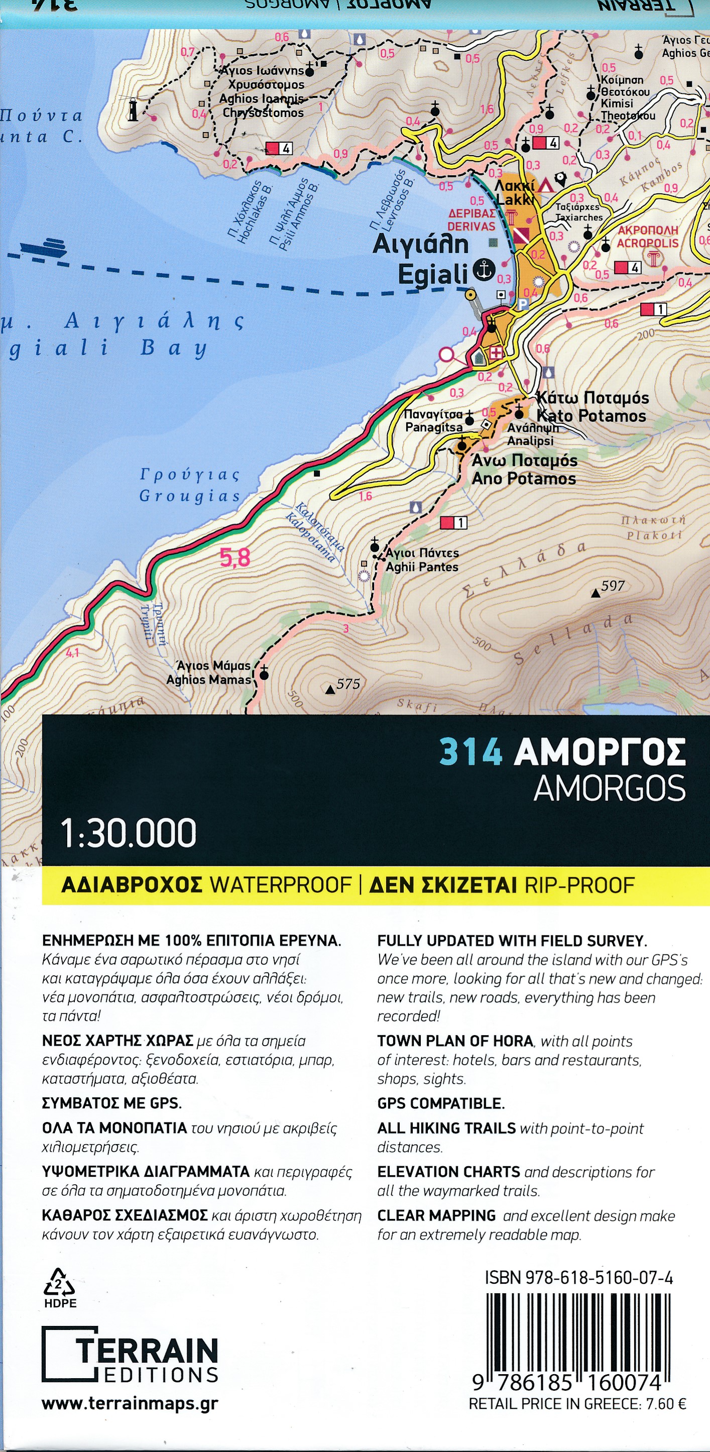 Wandelkaart 314 Amorgos | Terrain maps (9786185160074)