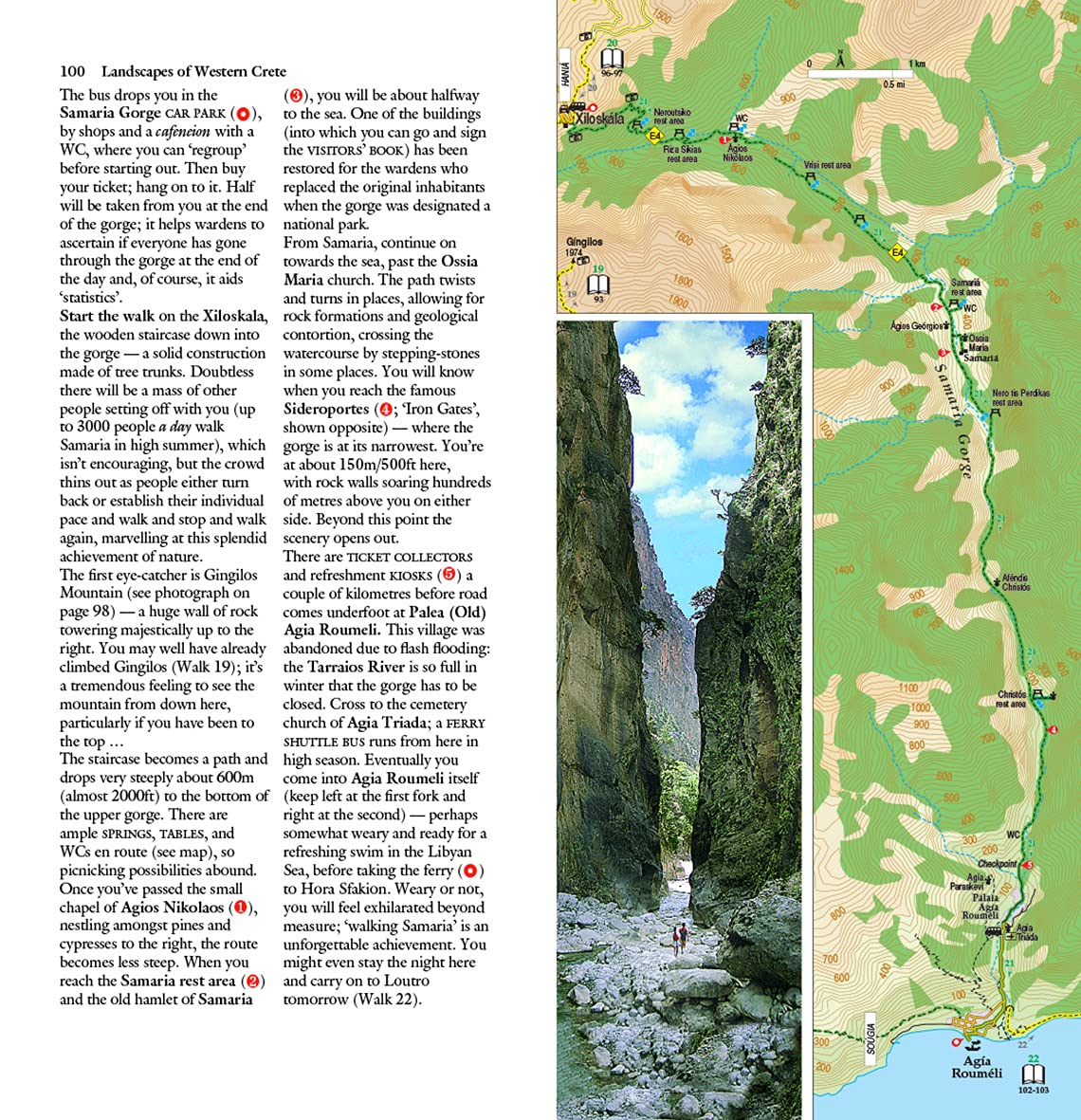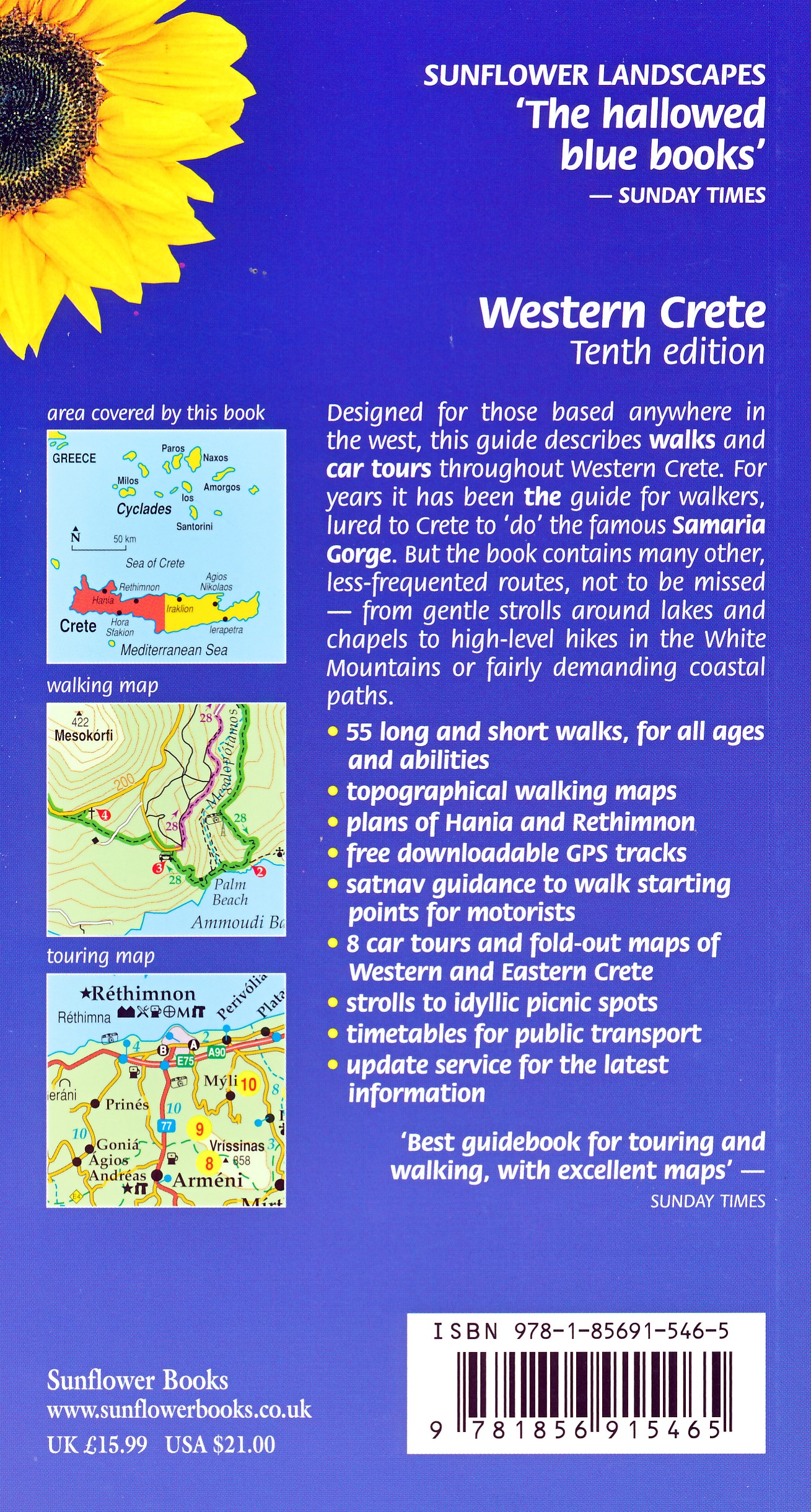Western Crete is real hikers' territory, and this book takes in all the best routes. Of course you will want to 'do' Samaria, but there are many, less frequented gorges to be explored. There are challenging hikes in both the White and Ida Mountains and long, long stretches along the southern coast where you can swim in crystal-clear water and perhaps stay overnight in idyllic villages like Loutro only accessible on foot or by boat.