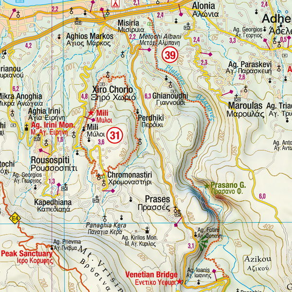 Gedetailleerde kaarten van Kreta op wandelschaal nivo zijn nauwelijks te krijgen. Daarom zijn deze 1:100.000 kaarten van Kreta oost en west prima te gebruiken voor de langere wandeltochten. Als u eenvoudige dagtochten wilt lopen, neem dan een wandelgidsje mee met routesuggesties. Dit soort eilanden zijn niet altijd eenvoudig te belopen, door de vele ezel- en geitenpaadjes.
