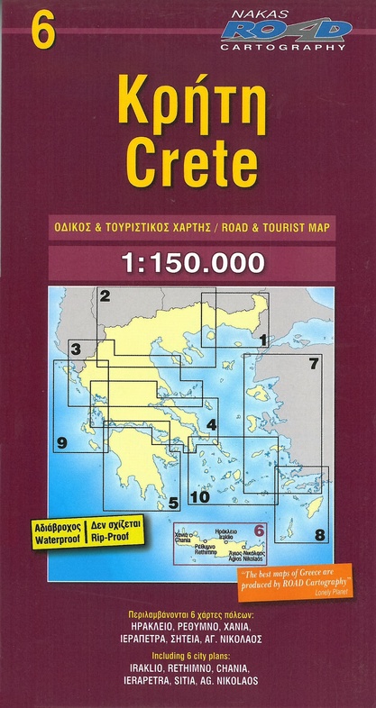 Met vier stadsplattegronden. Iraklio, Agh Nikolaos, Rethymno, Hania