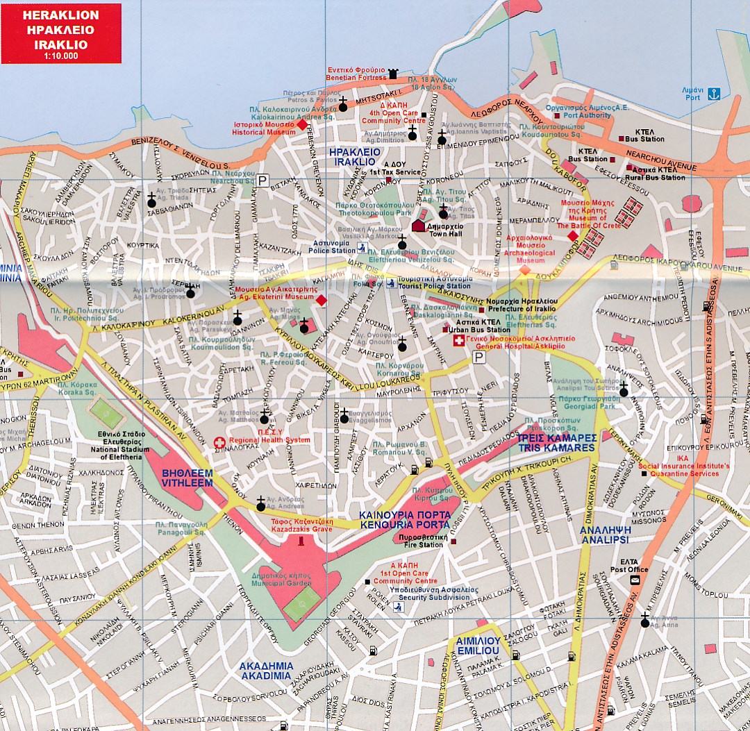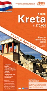 Goede wegenkaart van Kreta. Waar beschikbaar worden hotels en campings getoond en met symbolen worden allerhande toeristische symbolen aangeduid als historische plaatsen, kloosters, museas etc. Op de kaart staat van de belangrijkste steden een centrumkaart en op de achterkant is toeristische informatie in het Nederlands te vinden. Kleurgebruik is duidelijk, maar een beetje flets, waardoor hoogteverschillen niet echt goed uitkomen.