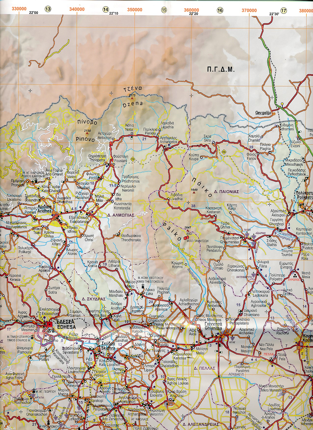 Anavasi Regional Maps series (Topo250), covering half of the mainland from Konitsa to Katerini in the north and from Messolongi to Thiva in the south. The map comprises all the new highways, the protected areas and Natura sites, the european and national long distance trails and a 84 pages index of settlements, mountains and mountain refuges.